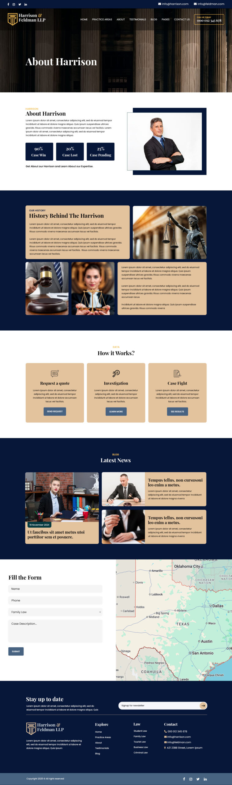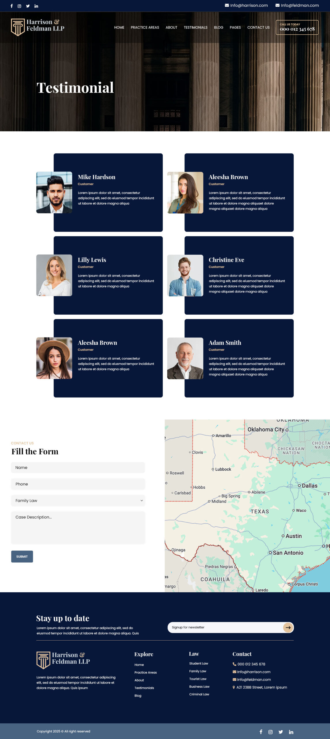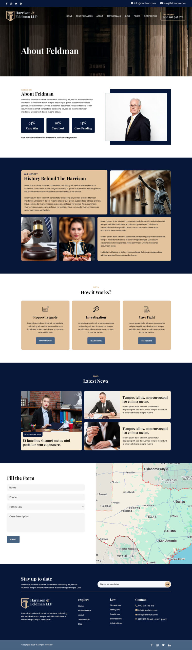 - Includes homepage sections for services, attorneys, results, testimonials, and contact